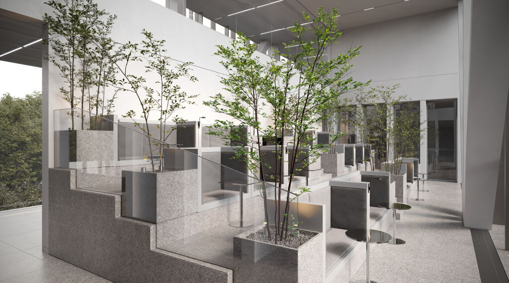 Территория вокруг офисного квартала свыше 5 тыс. кв. м будет благоустроена и станет продолжением парка «Ходынское поле»: здесь организуют проезды и тротуары, высадят кустарники и цветники, установят наружное освещение. На двух подземных уровнях оборудуют паркинг на 550 машино-мест с зарядными станциями для электромобилей и инфраструктурой для средств микромобильности.